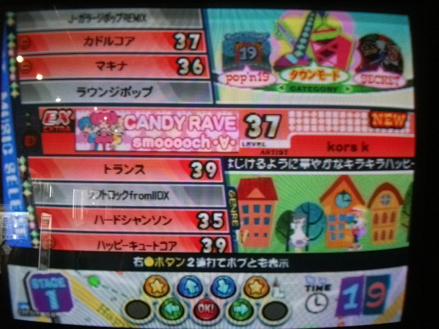 『僕らの街にやってきた!』(笑)って事で本日よりポップンミュージック19新イベント解禁。15:00の時点で携帯サイトにTOWNモードで「買い物リスト」とか載ってたのでポイント貯めて何らか注入して隠し曲解禁させるモノかと思いきや…
