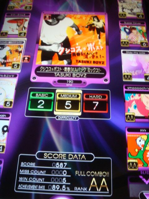 ※96曲だし高速滝あると思いきや終始指運びの連続。はいっ未クリアでしたよ~でも、PASELI使用だと落ちても次に進める様子。曲はGIGA BREAKっぽい重低音なイメージ
