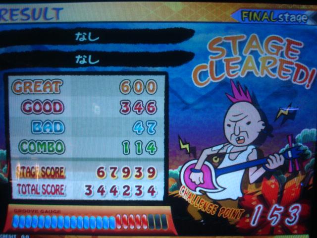 今作に入ってから粘着してプレイしてみたものの、三箇所目の低速地帯でごっそりゲージを持っていかれて難儀した曲。序盤が繋がり易くなるので鏡譜面も試した事あるけど、そうすると後半の低速地帯が慣れてなくて結果は同じ事に・・・半ば放置気味だったけど今日久々にやったらあっさり超えた。序盤のスライド気味な譜面地帯でコンボをなるべく繋げて低速地帯(特に三箇所目)はもう譜面覚えて耐える。低速地帯終われば後はクリアラインまで十分回復できる。ラストは譜面4・6を押すと後の三つ同時押しが押せなくなるので同時押しの連続と思ったほうがよい。